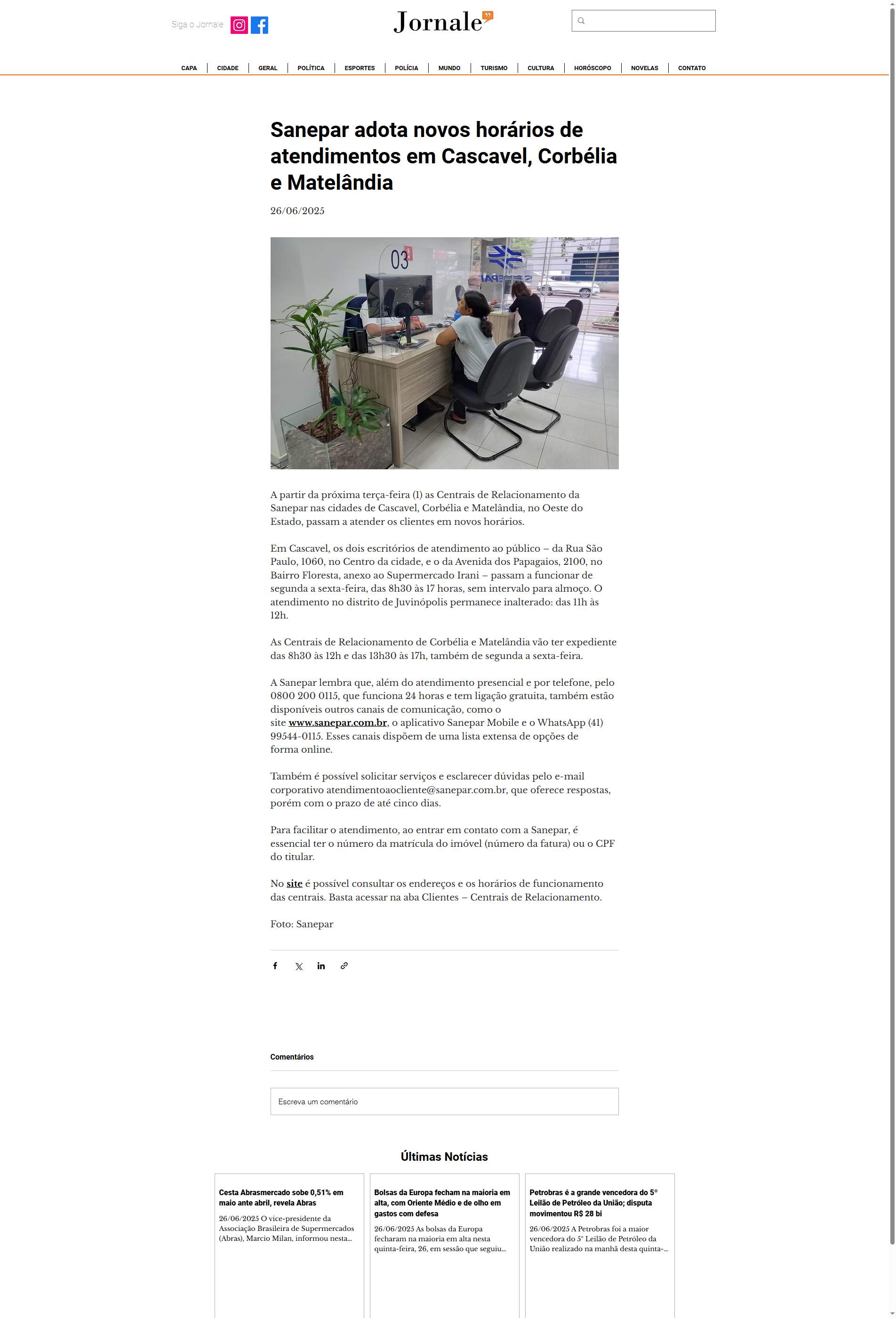 As Centrais de Relacionamento de Corbélia e Matelândia vão ter expediente das 8h30 às 12h e das 13h30 às 17h, também de segunda a sexta-feira.