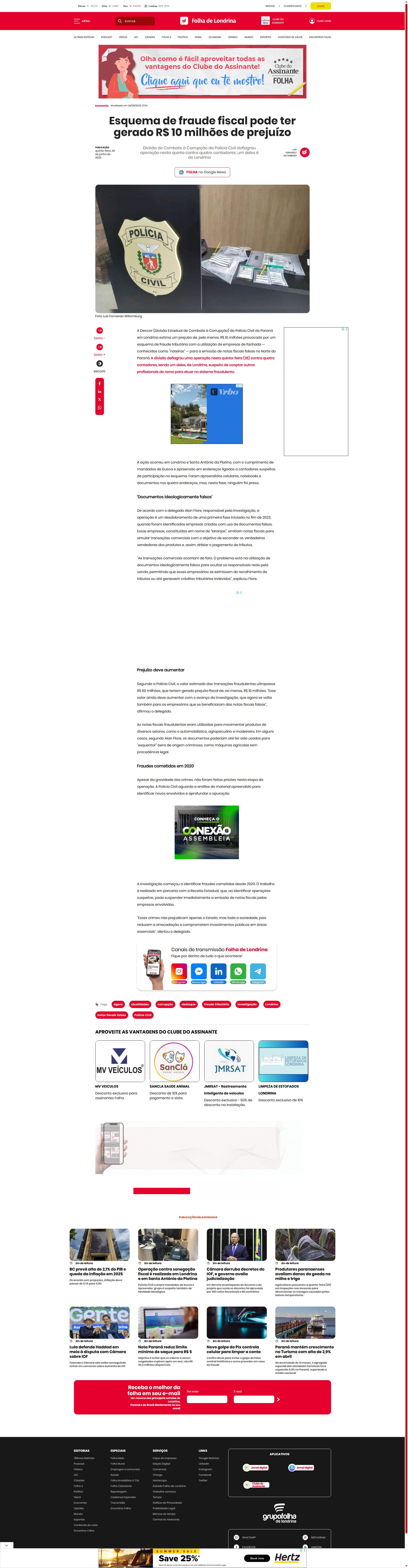 Polícia Civil do Paraná em Londrina estima um prejuízo de, pelo menos, R$ 10 milhões provocado por um esquema de fraude tributária com a utilização de empresas de fachada — conhecidas como "noteiras" — para a emissão de notas fiscais falsas no Norte do