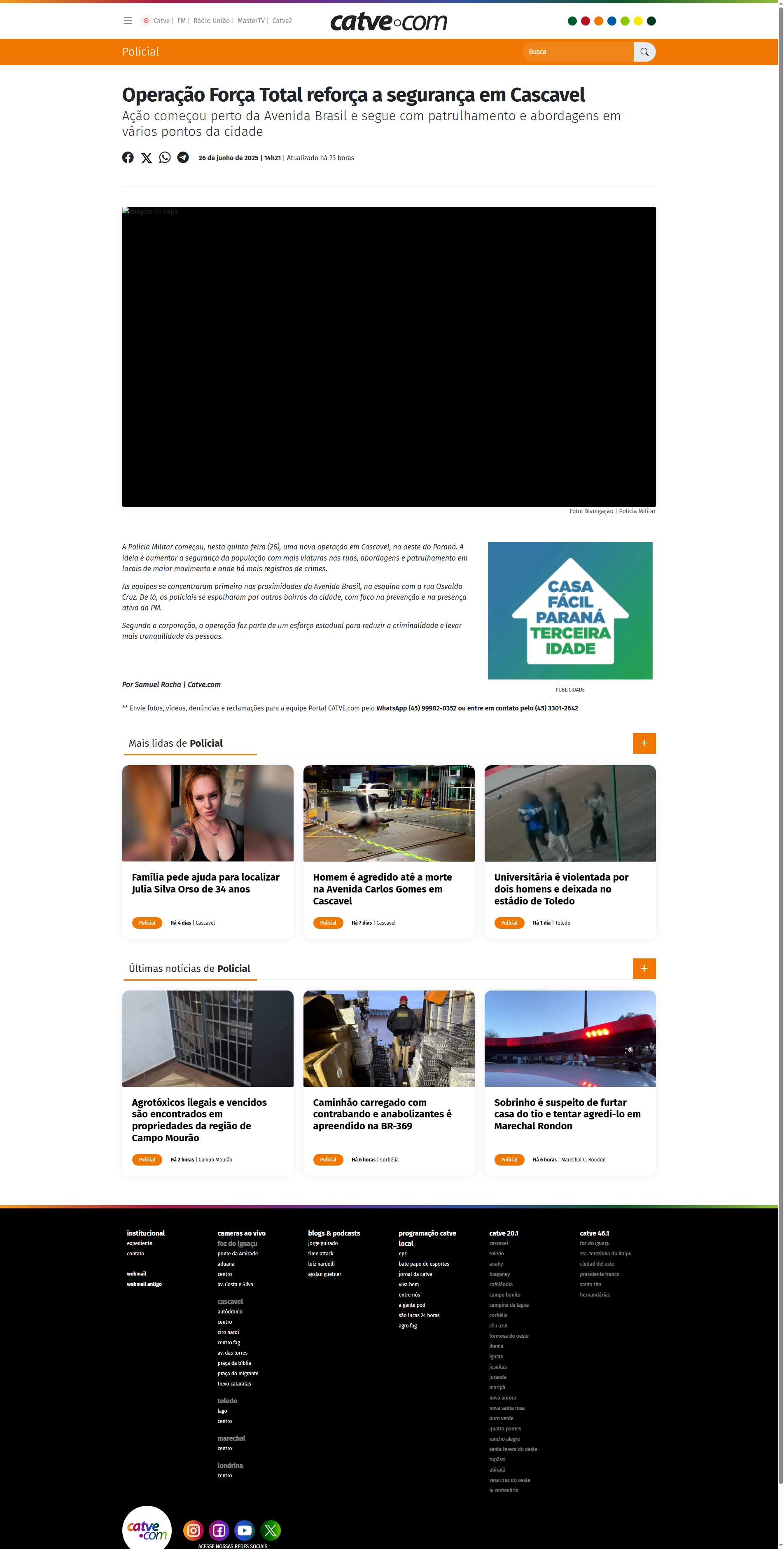 Polícia Militar começou, nesta quinta-feira (26), uma nova operação em Cascavel, no oeste do