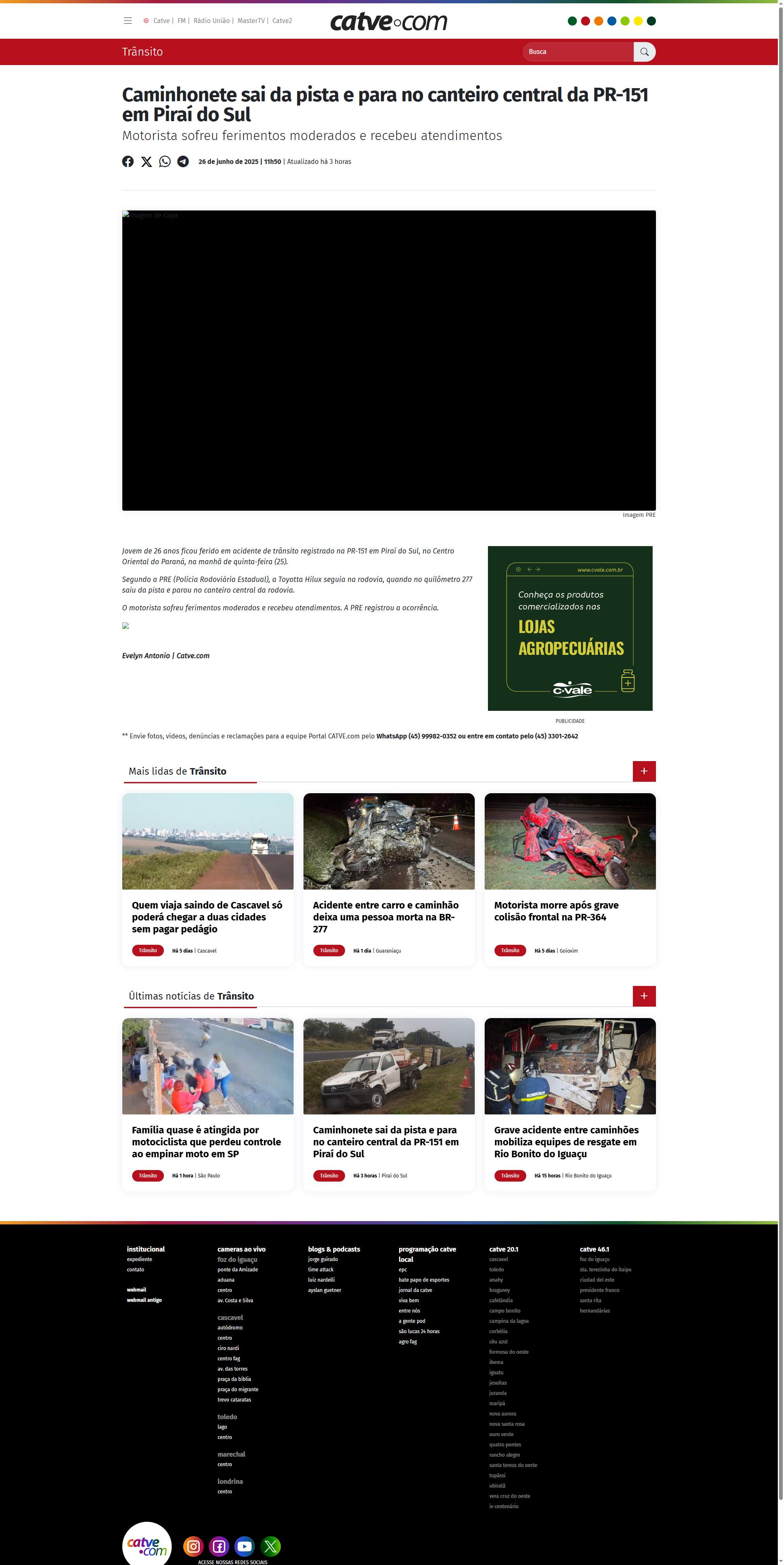 O motorista sofreu ferimentos moderados e recebeu atendimentos. A PRE registrou a ocorrência.