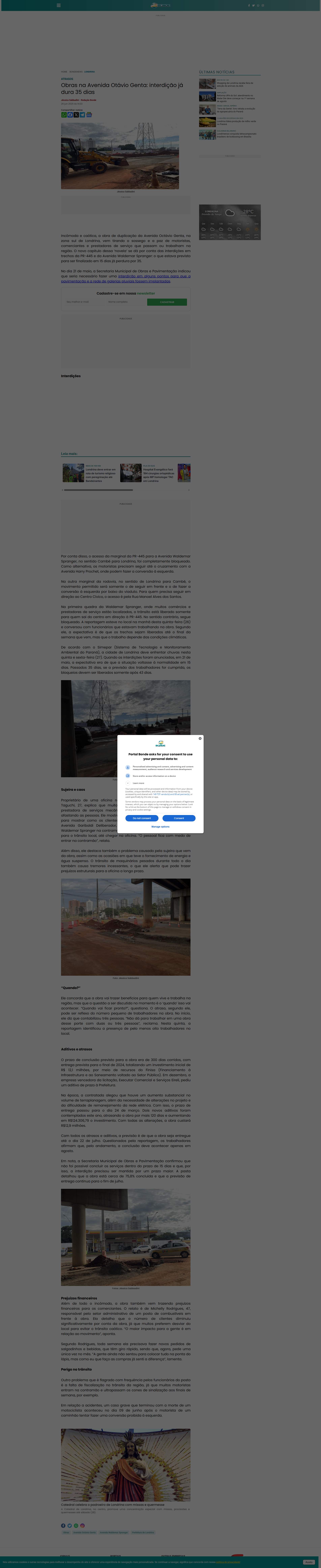 Monitoramento Ambiental do Paraná), a cidade de Londrina deve enfrentar chuvas nesta quinta e sexta-feira (27). Quando as interdições foram anunciadas, em 21 de maio, a expectativa era de que a situação voltasse à normalidade em 15 dias. Passados 35 dias, se a previsão dos trabalhadores for cumprida, os bloqueios devem ser liberados somente após 43 dias.