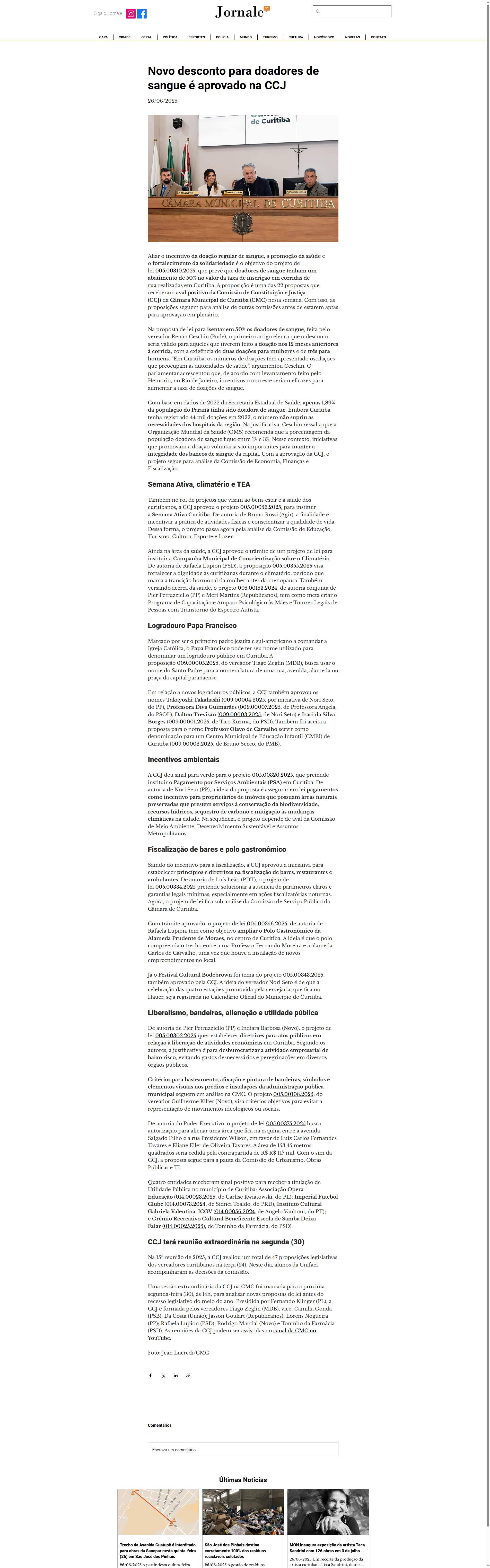 A CCJ deu sinal para verde para o projeto 005.00320.2025, que pretende instituir o Pagamento por Serviços Ambientais (PSA) em Curitiba. De autoria de Nori Seto (PP), a ideia da proposta é assegurar em lei pagamentos como incentivo para proprietários de imóveis que possuam áreas naturais preservadas que prestem serviços à conservação da biodiversidade, recursos hídricos, sequestro de carbono e mitigação às mudanças climáticas na cidade. Na sequência, o projeto depende de aval da Comissão de Meio Ambiente, Desenvolvimento Sustentável e Assuntos Metropolitanos.