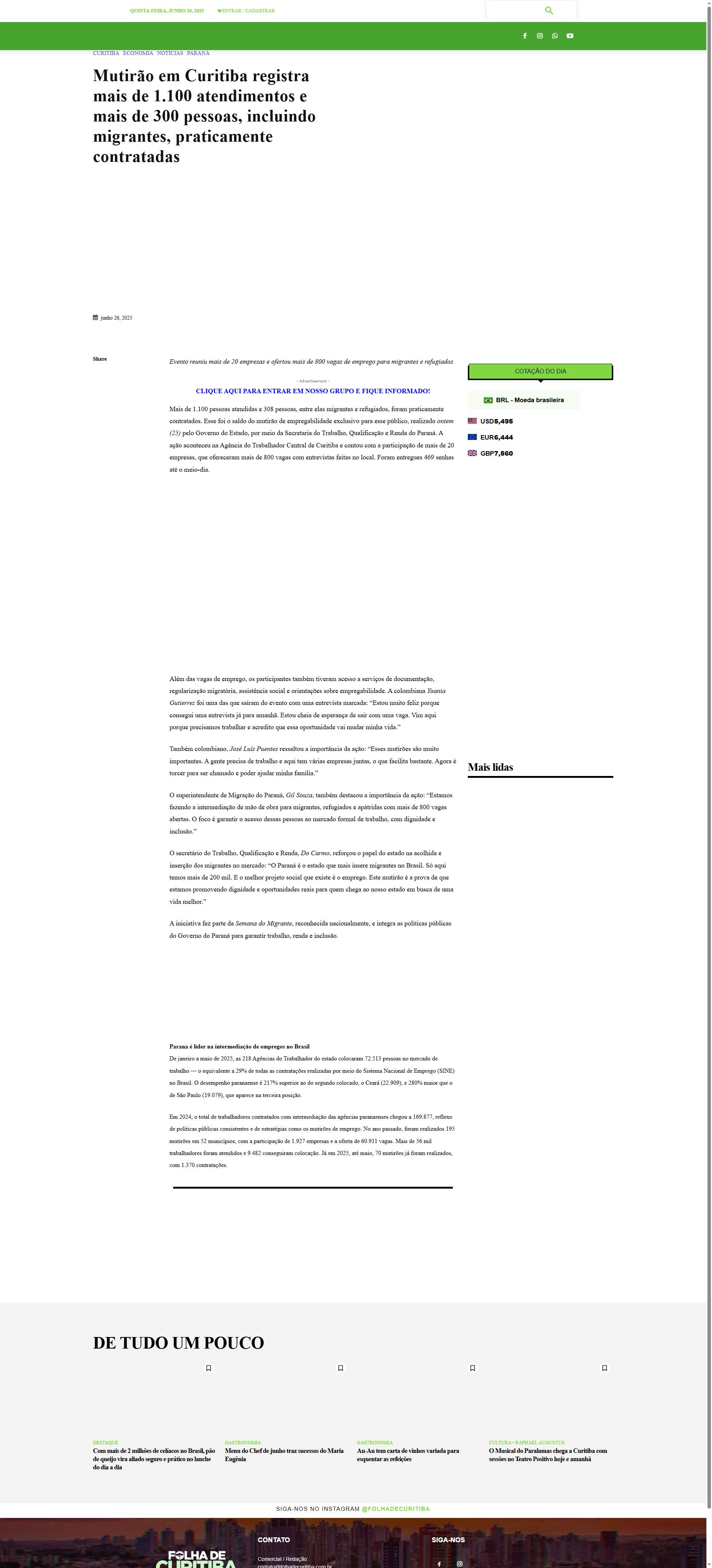 Paraná é o estado que mais insere migrantes no Brasil. Só aqui temos mais de 200 mil. E o melhor projeto social que existe é o emprego. Este mutirão é a prova de que estamos promovendo dignidade e oportunidades reais para quem chega ao nosso estado em busca de uma vida melhor.”