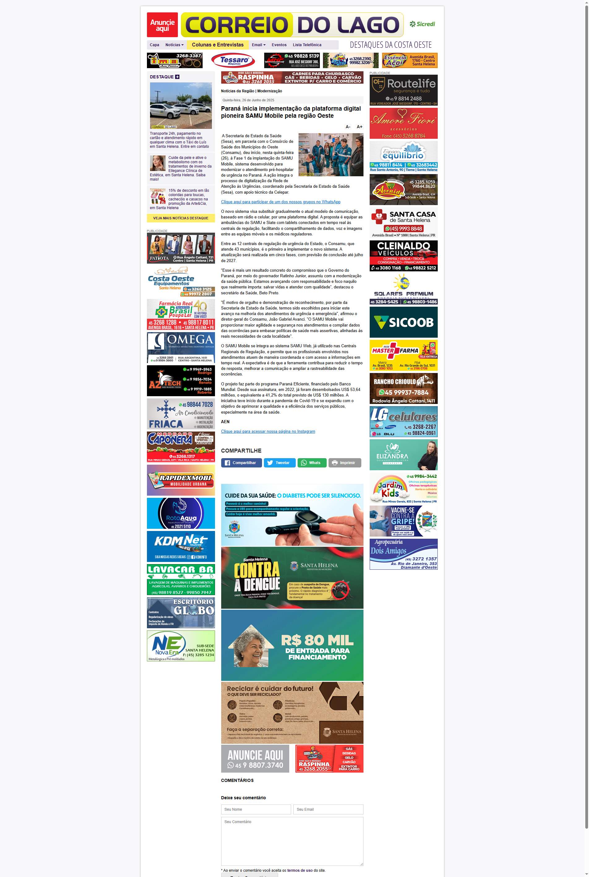 governador Ratinho Junior, assumiu com a modernização da saúde pública. Estamos avançando com responsabilidade e foco naquilo que realmente importa: salvar vidas e atender com qualidade”, destacou o secretário da