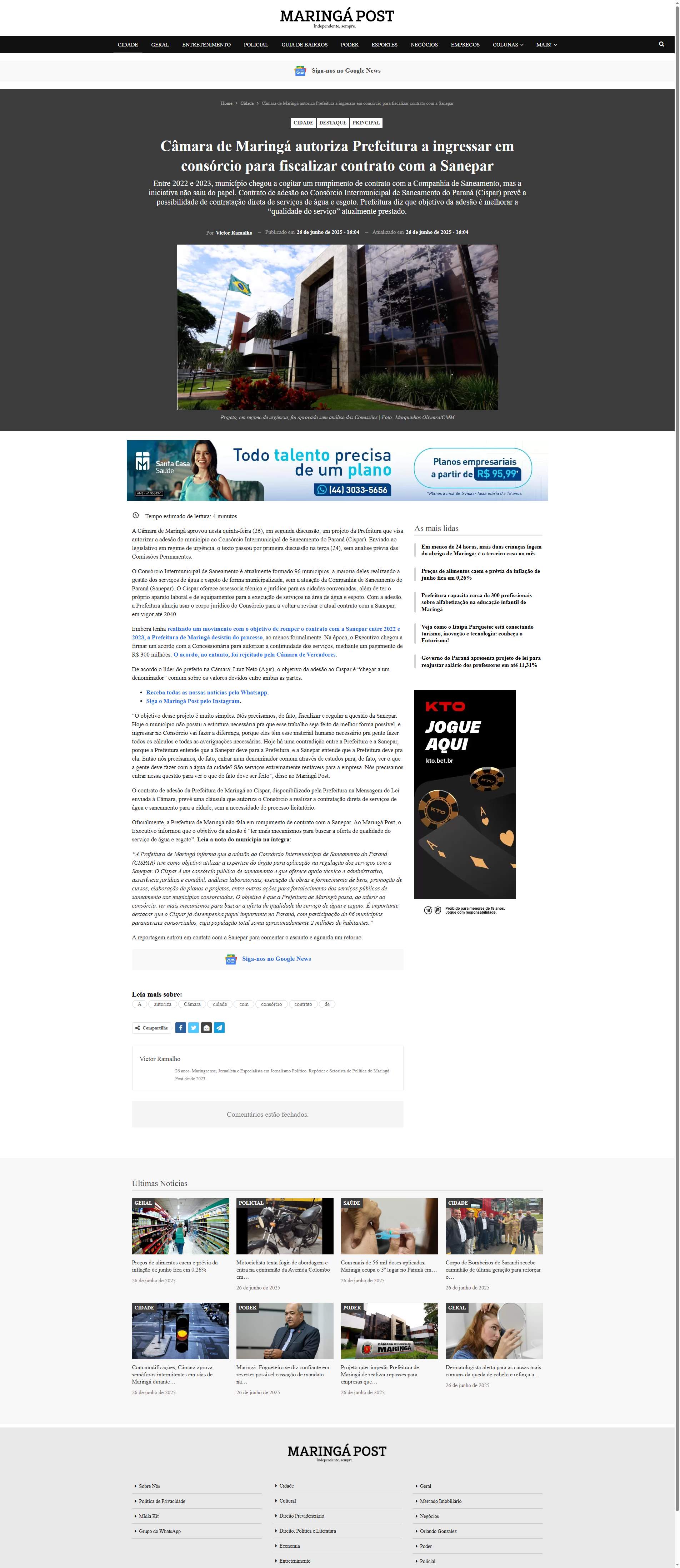 Sanepar. Ao Maringá Post, o Executivo informou que o objetivo da adesão é “ter mais mecanismos para buscar a oferta de qualidade do serviço de água e esgoto”. Leia a nota do município na íntegra: