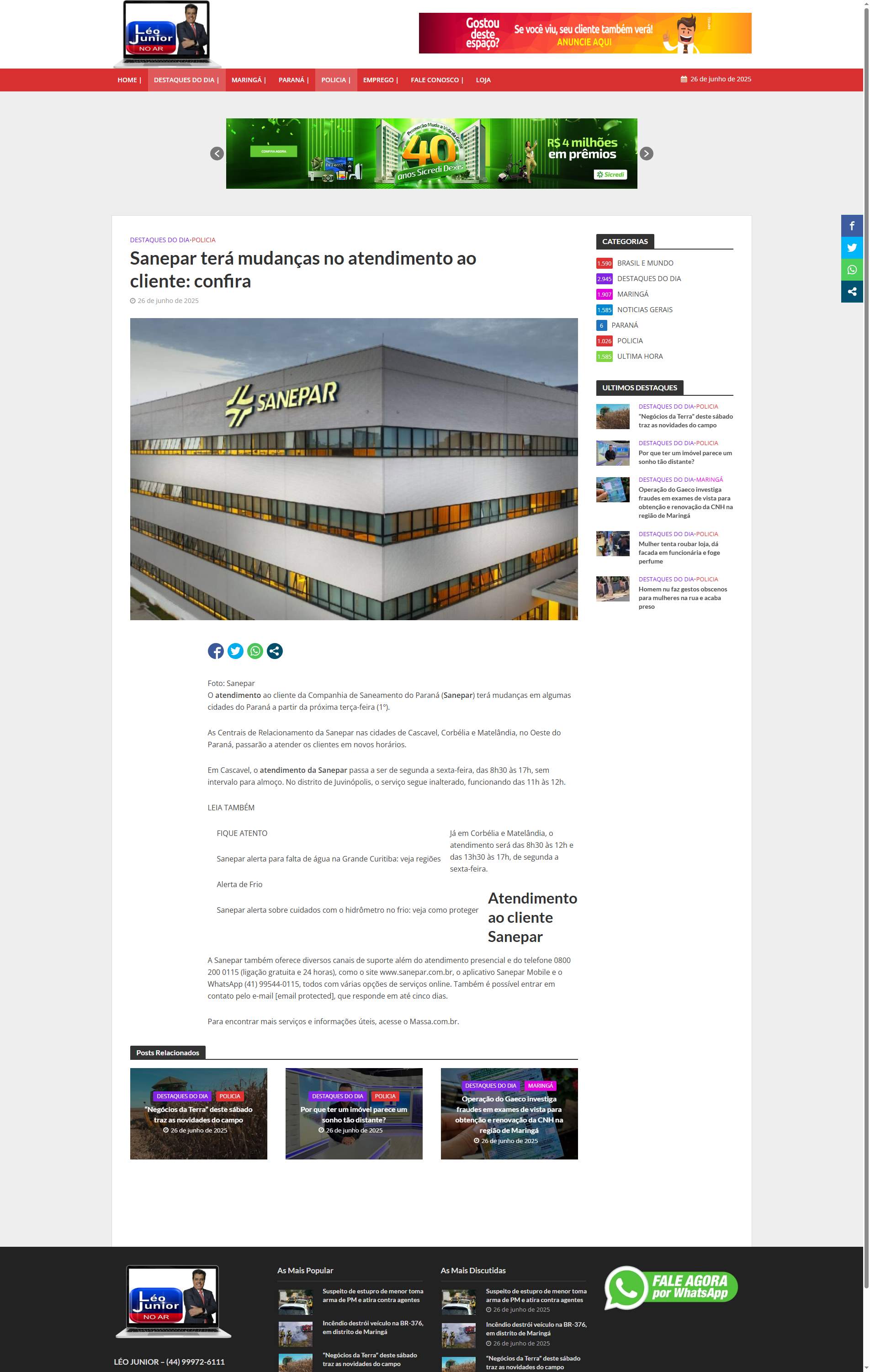Sanepar também oferece diversos canais de suporte além do atendimento presencial e do telefone 0800 200 0115 (ligação gratuita e 24 horas), como o site www.sanepar.com.br, o aplicativo