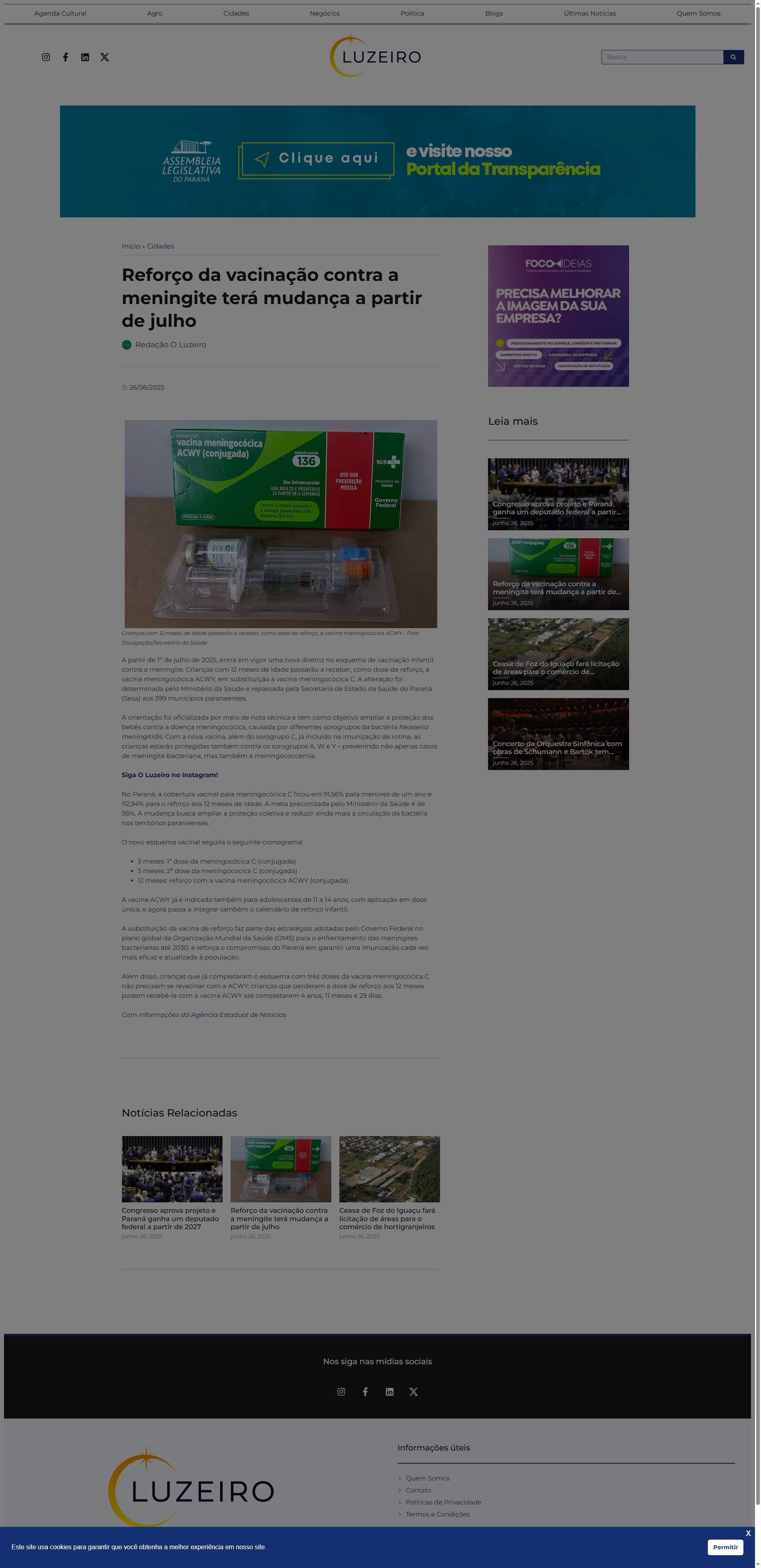 Paraná, a cobertura vacinal para meningocócica C ficou em 91,56% para menores de um ano e 92,94% para o reforço aos 12 meses de idade. A meta preconizada pelo Ministério da Saúde é de 95%. A mudança busca ampliar a proteção coletiva e reduzir ainda mais a circulação da bactéria nos territórios paranaenses.