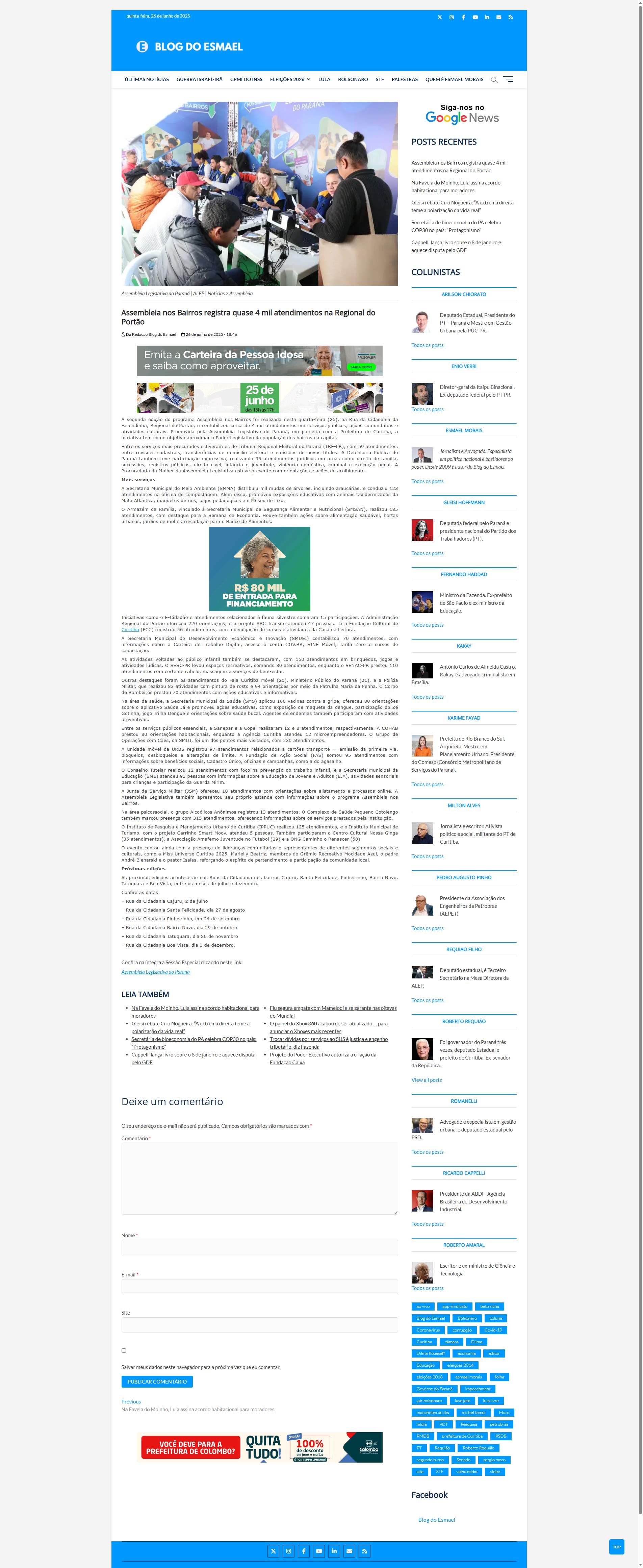 Paraná, em parceria com a Prefeitura de Curitiba, a iniciativa tem como objetivo aproximar o Poder Legislativo da população dos bairros da capital.