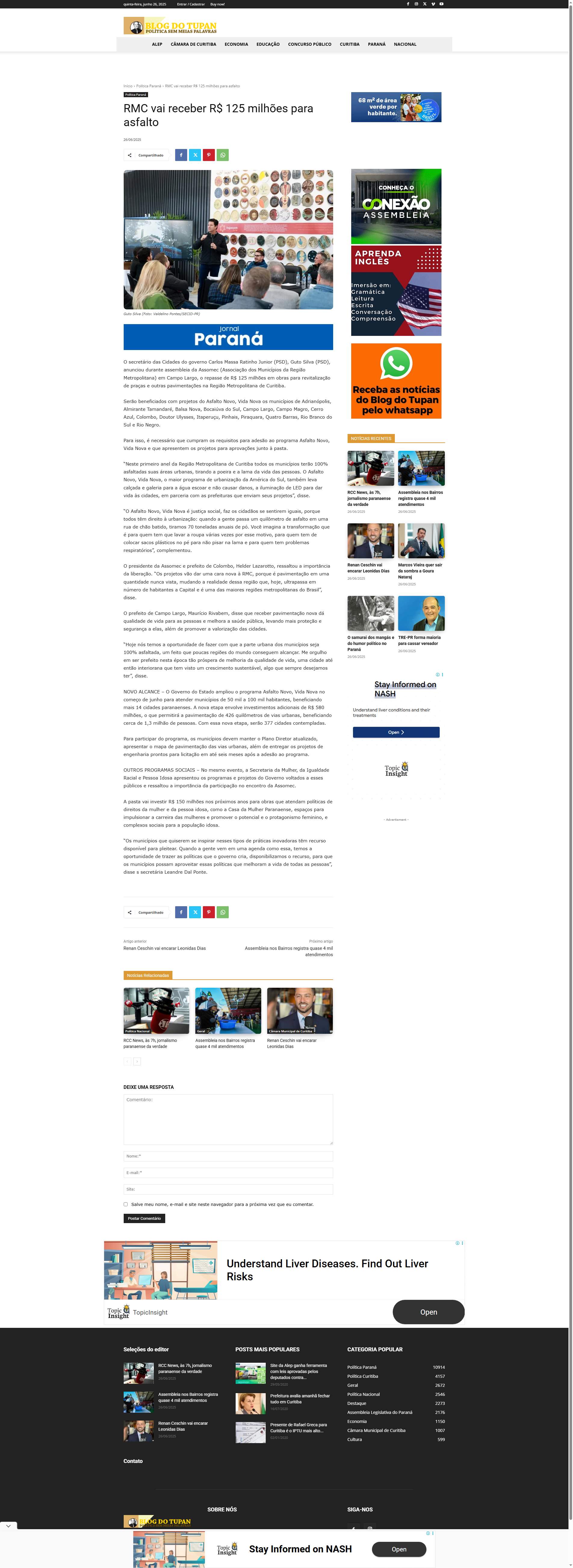 O post RMC vai receber R$ 125 milhões para asfalto apareceu primeiro em Blog do Tupan.