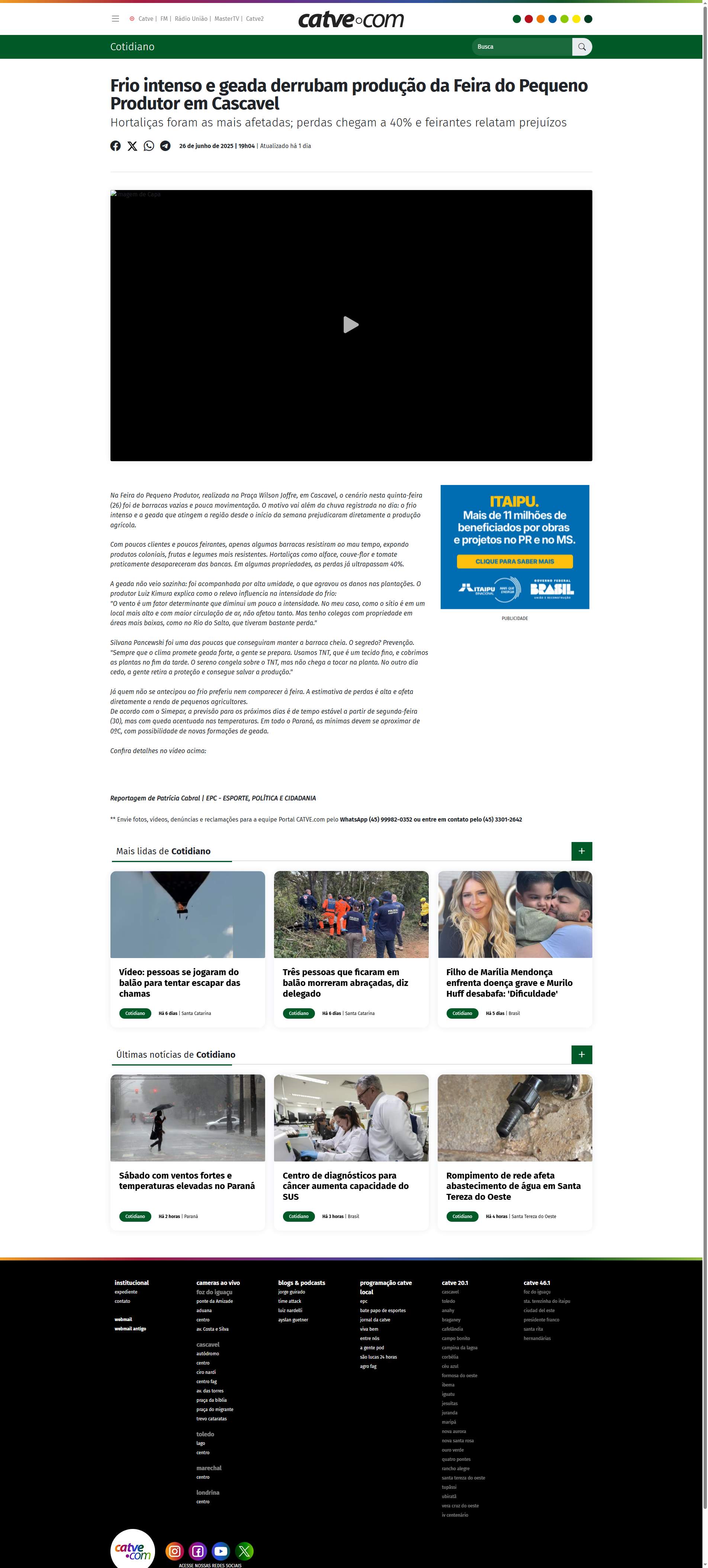 Na Feira do Pequeno Produtor, realizada na Praça Wilson Joffre, em Cascavel, o cenário nesta quinta-feira (26) foi de barracas vazias e pouca movimentação. O motivo vai além da chuva registrada no dia: o frio intenso e a geada que atingem a região desde o início da semana prejudicaram diretamente a produção agrícola.