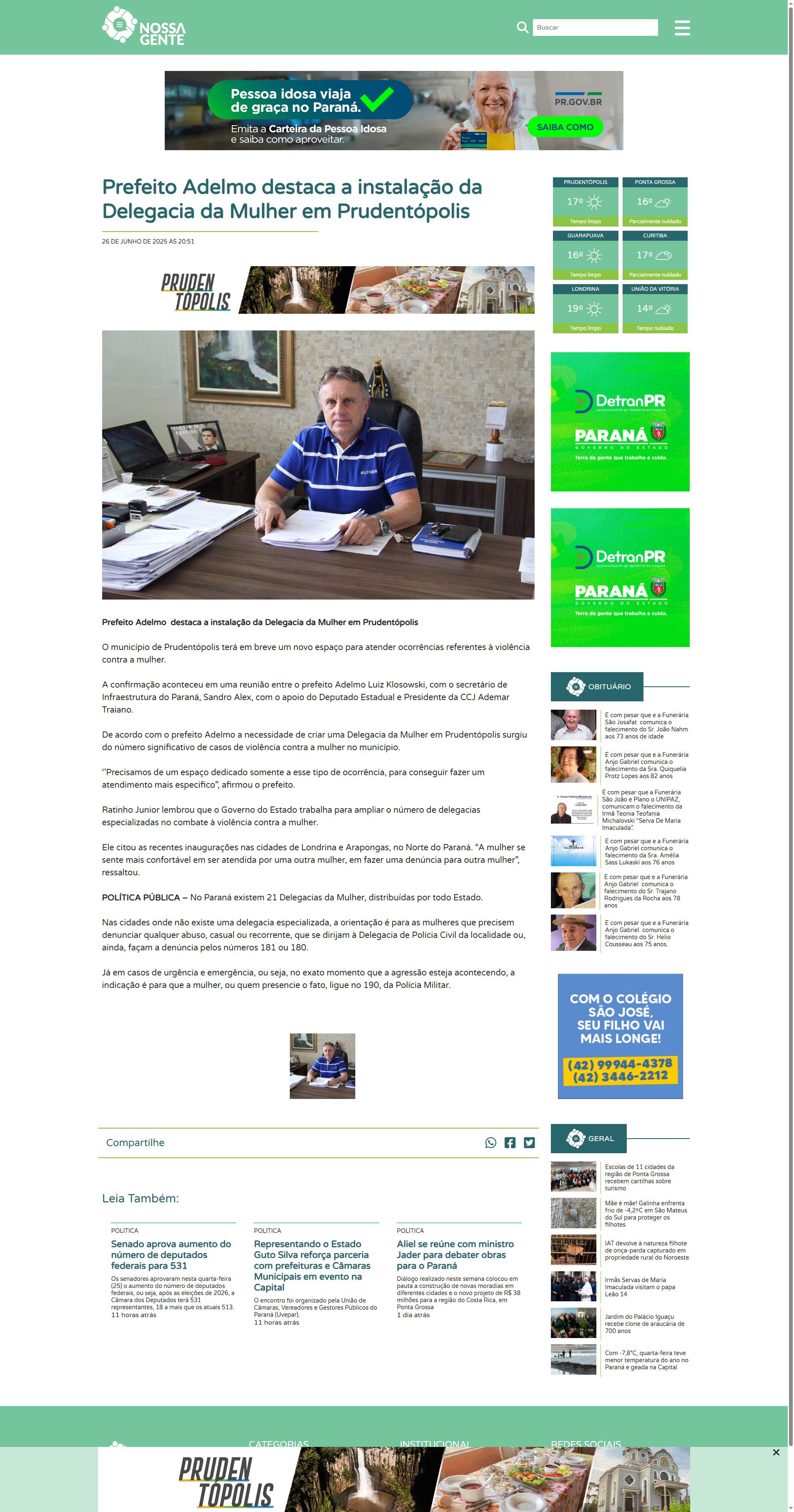 prefeito Adelmo a necessidade de criar uma Delegacia da Mulher em Prudentópolis surgiu do número significativo de casos de violência contra a mulher no município.