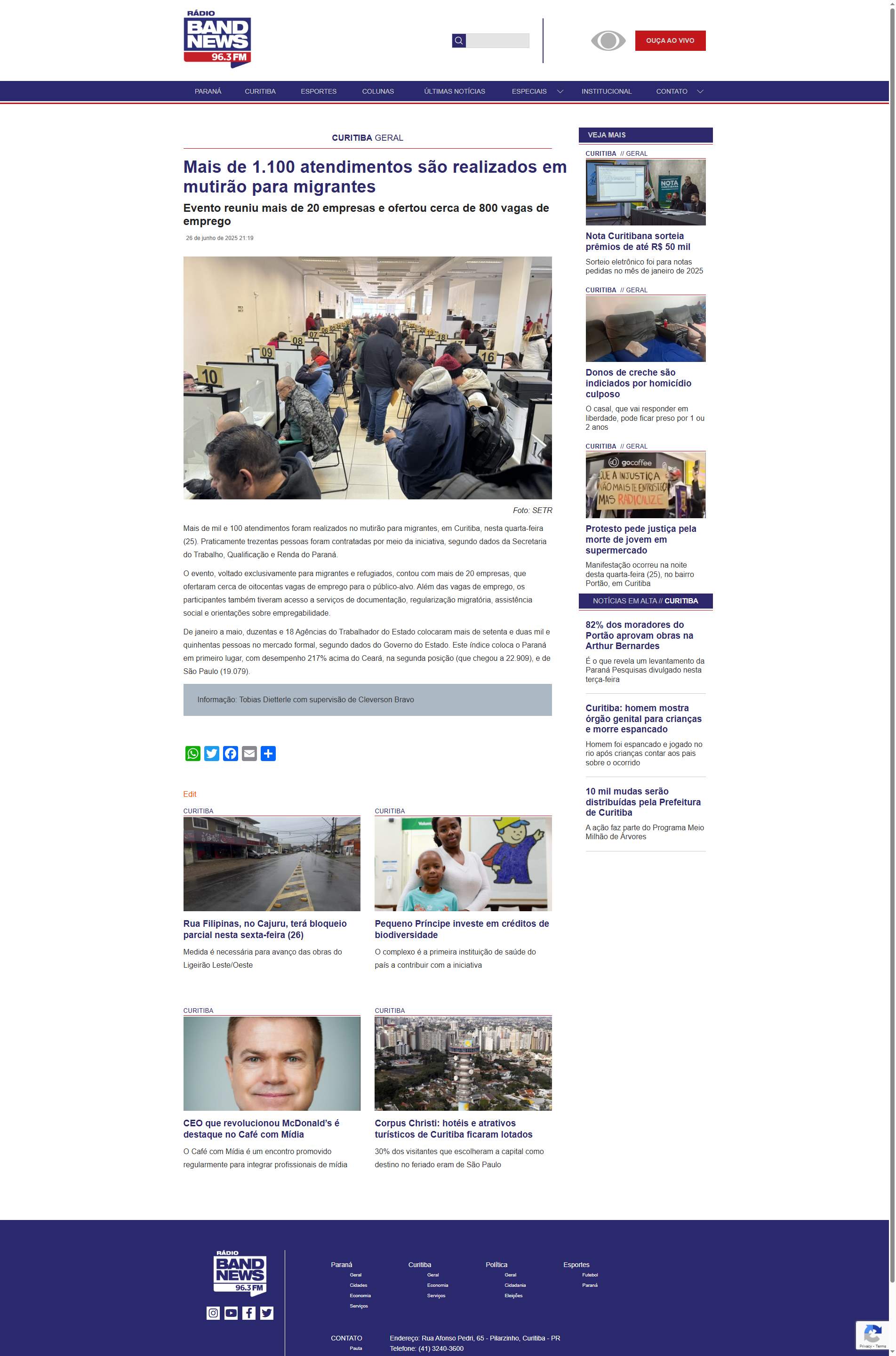 Mais de mil e 100 atendimentos foram realizados no mutirão para migrantes, em Curitiba, nesta quarta-feira (25). Praticamente trezentas pessoas foram contratadas por meio da iniciativa, segundo dados da