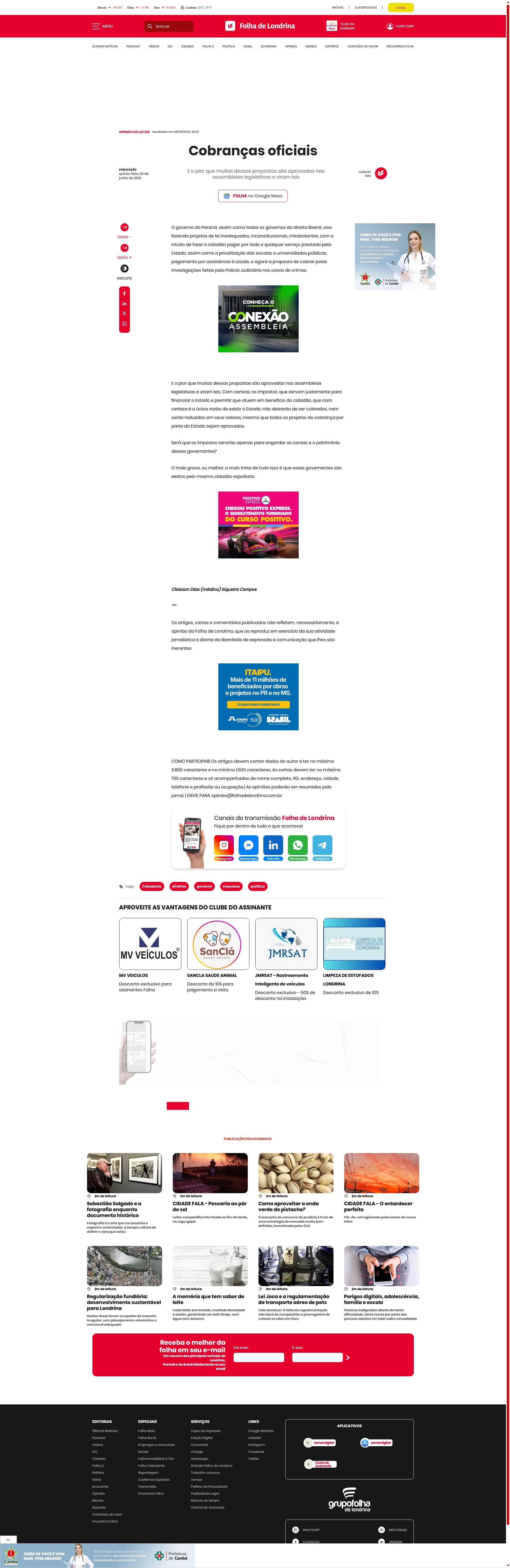 Os artigos, cartas e comentários publicados não refletem, necessariamente, a opinião da Folha de Londrina, que os reproduz em exercício da sua atividade jornalística e diante da liberdade de expressão e comunicação que lhes são inerentes.