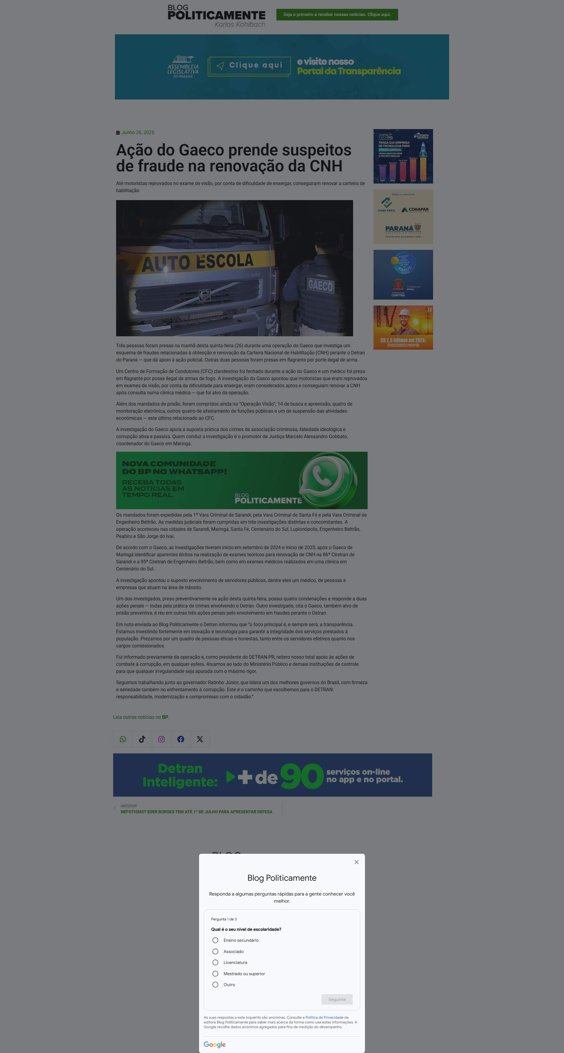 governador Ratinho Júnior, que lidera um dos melhores governos do Brasil, com firmeza e seriedade também no enfrentamento à corrupção. Este é o caminho que escolhemos para o DETRAN: responsabilidade, modernização e compromisso com o cidadão.”