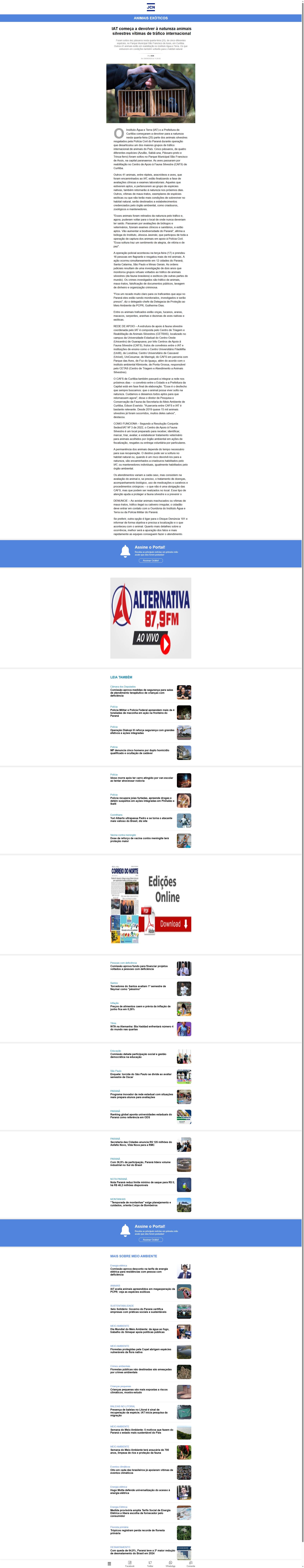 Instituto Água e Terra (IAT) e a Prefeitura de Curitiba começaram a devolver para a natureza nesta quarta-feira (25) parte dos animais silvestres resgatados pela