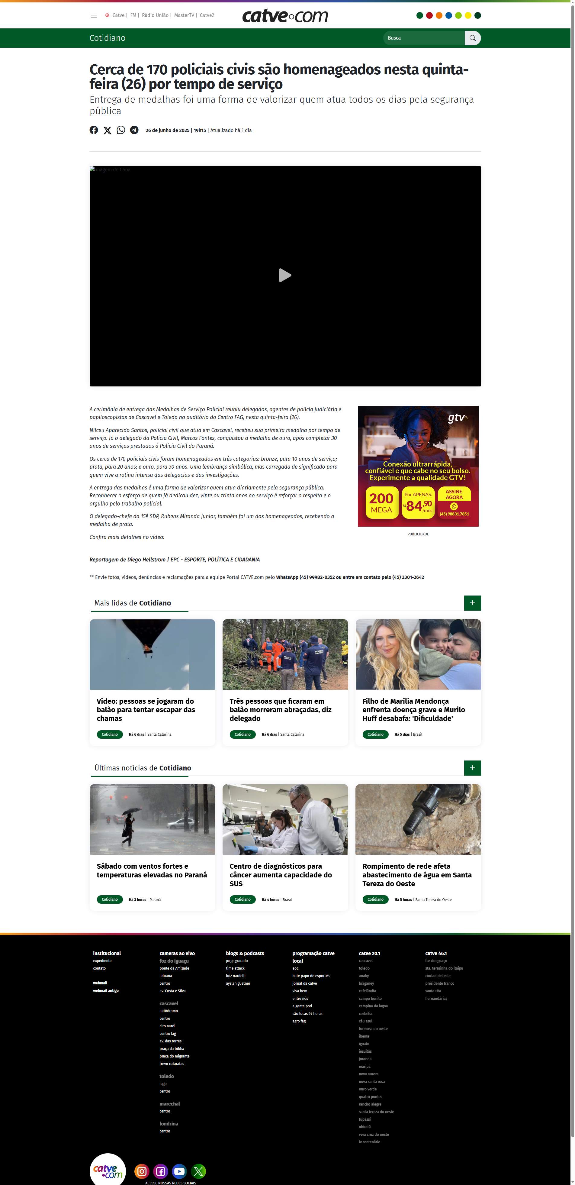 A cerimônia de entrega das Medalhas de Serviço Policial reuniu delegados, agentes de polícia judiciária e papiloscopistas de Cascavel e Toledo no auditório do Centro FAG, nesta quinta-feira (26).