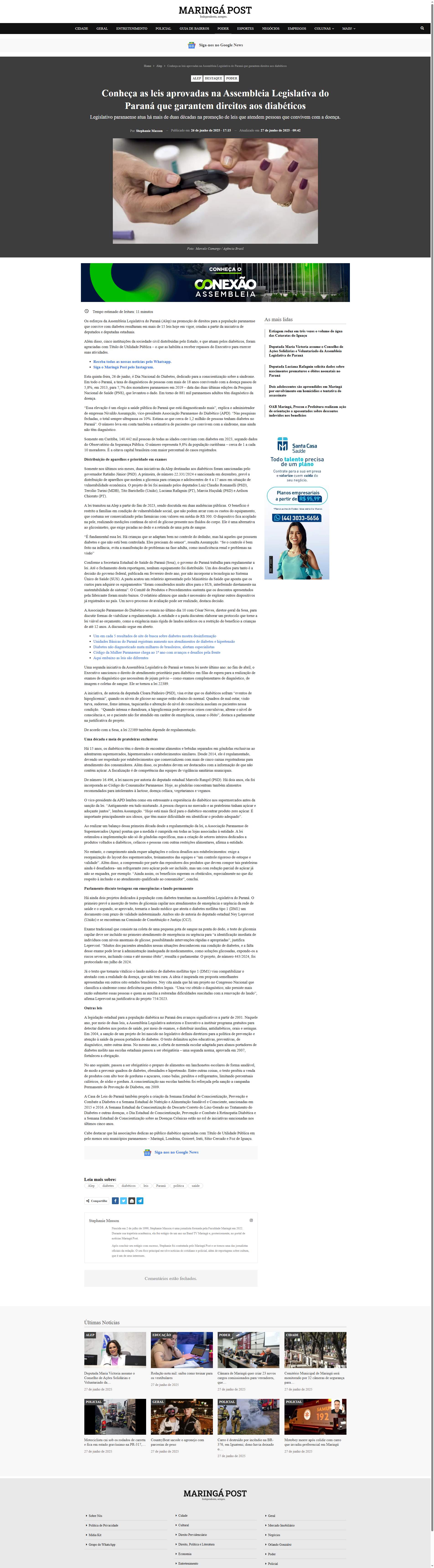 Cabe destacar que há associações dedicas ao público diabético agraciadas com Título de Utilidade Pública em pelo menos seis municípios paranaenses - Maringá, Londrina, Goioerê, Irati, Sítio Cercado e Foz de